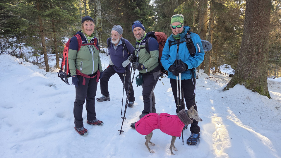 Wunderbare Wanderung bei prächtigem Wetter. Es gab zwar Schnee, aber die Schneeschuhe waren nicht erforderlich. Grödeln waren allerdings sehr nützlich. Wir wanderten zu viert und genossen die aussichtsreiche Tour entlang den Nordwaldkammweges und über das Dreiländereck (DE, CZ, AT) auf den Plöckenstein.